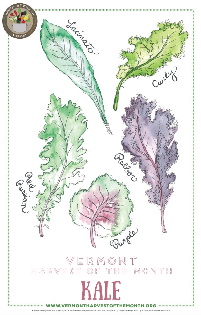 Kale is a member of the Brassicaceae family, also known as the cabbage family, along with broccoli, Brussels sprouts, cabbage, cauliflower and kohlrabi. It originated in the Mediterranean region and was brought to the United States from England in the 17th century. Kale is a very hardy plant; it can withstand frosts and snowfall, making it an excellent staple food in the winter months. Kale plants range in color from white-green and yellowgreen to blue-green and violet. Some varieties have been developed specifically for ornamental purposes.